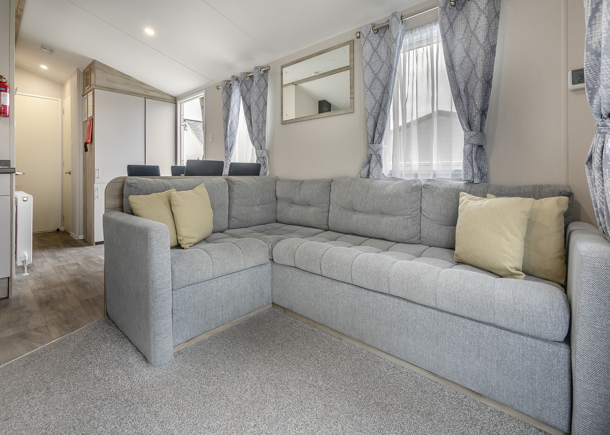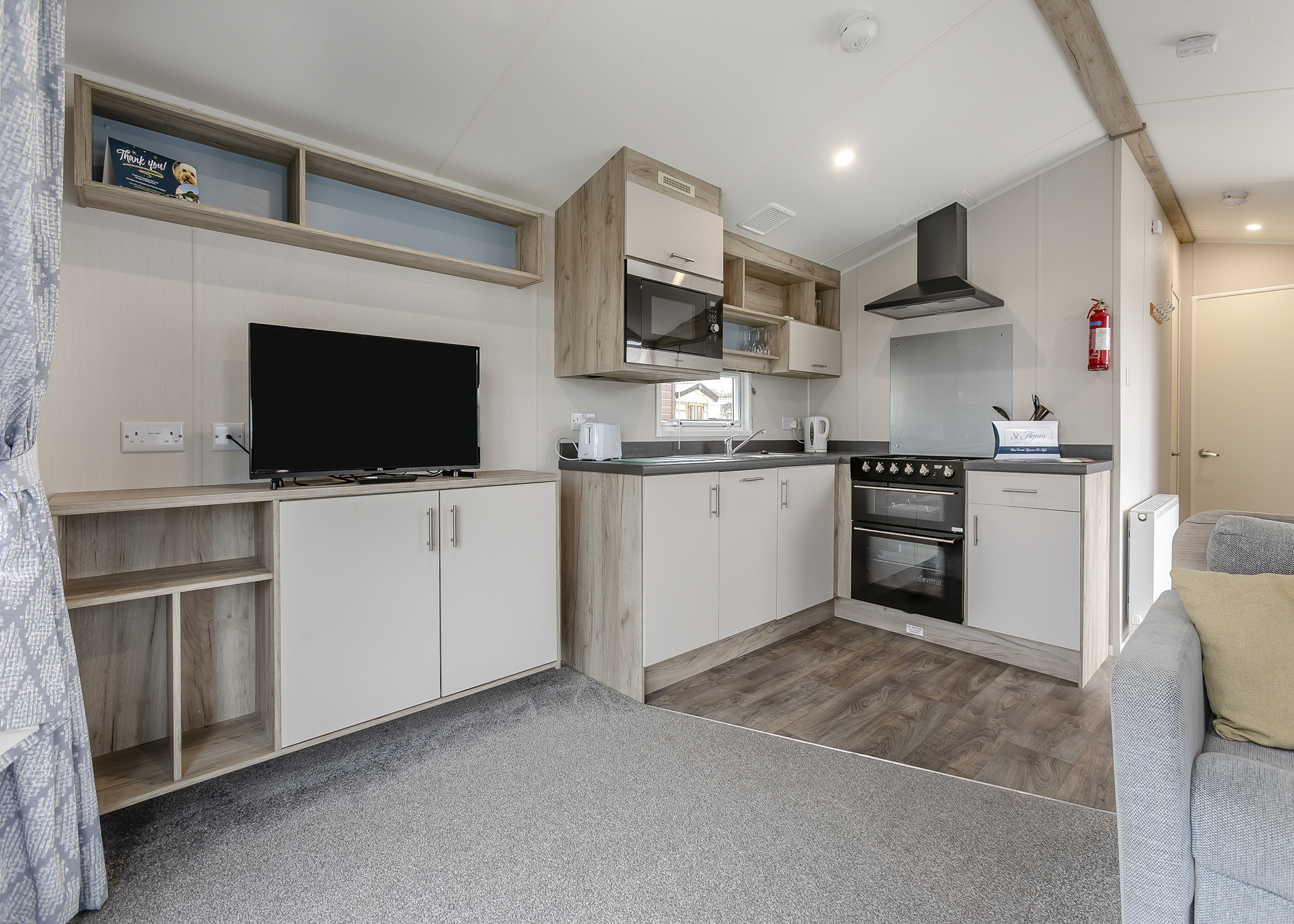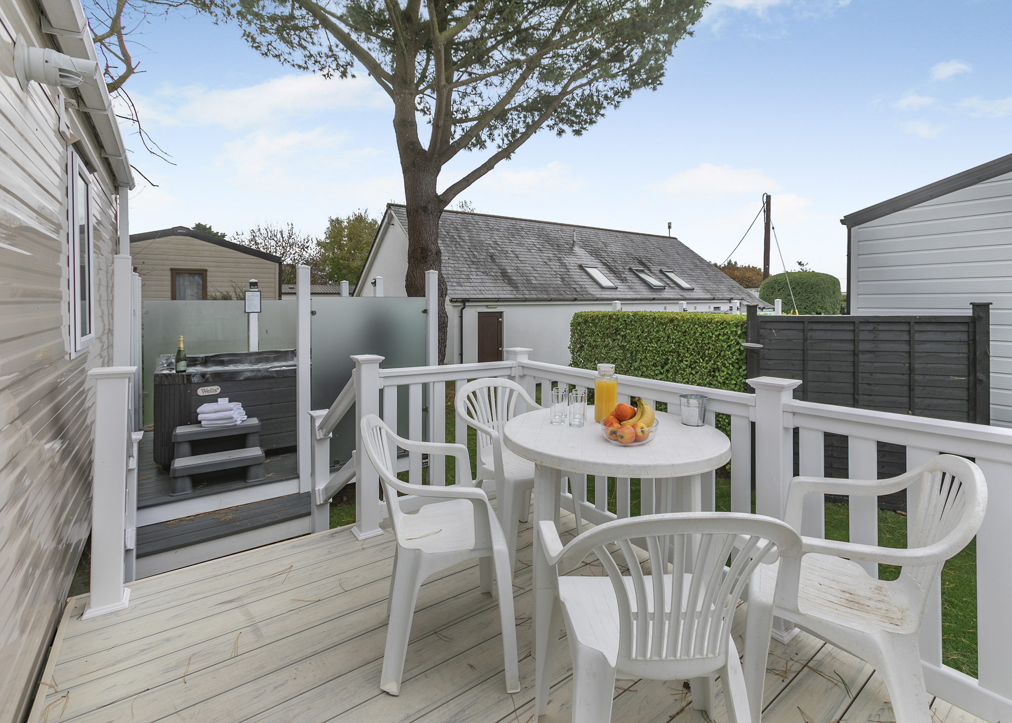 Our Holywell Collection offers a spacious, bright, and welcoming home away from home. These units comprise of a lovely master bedroom with a king-sized bed and a dressing table, as well as options for additional bedrooms, all with respectable storage space. Upon entering, you are greeted with an open plan living and dining area and a well-equipped kitchen. The patio door guides you onto private decking where you are met with a lavish private hot tub. This holiday home is perfect for socialising, dining, and relaxing and most of all, enjoying your getaway!